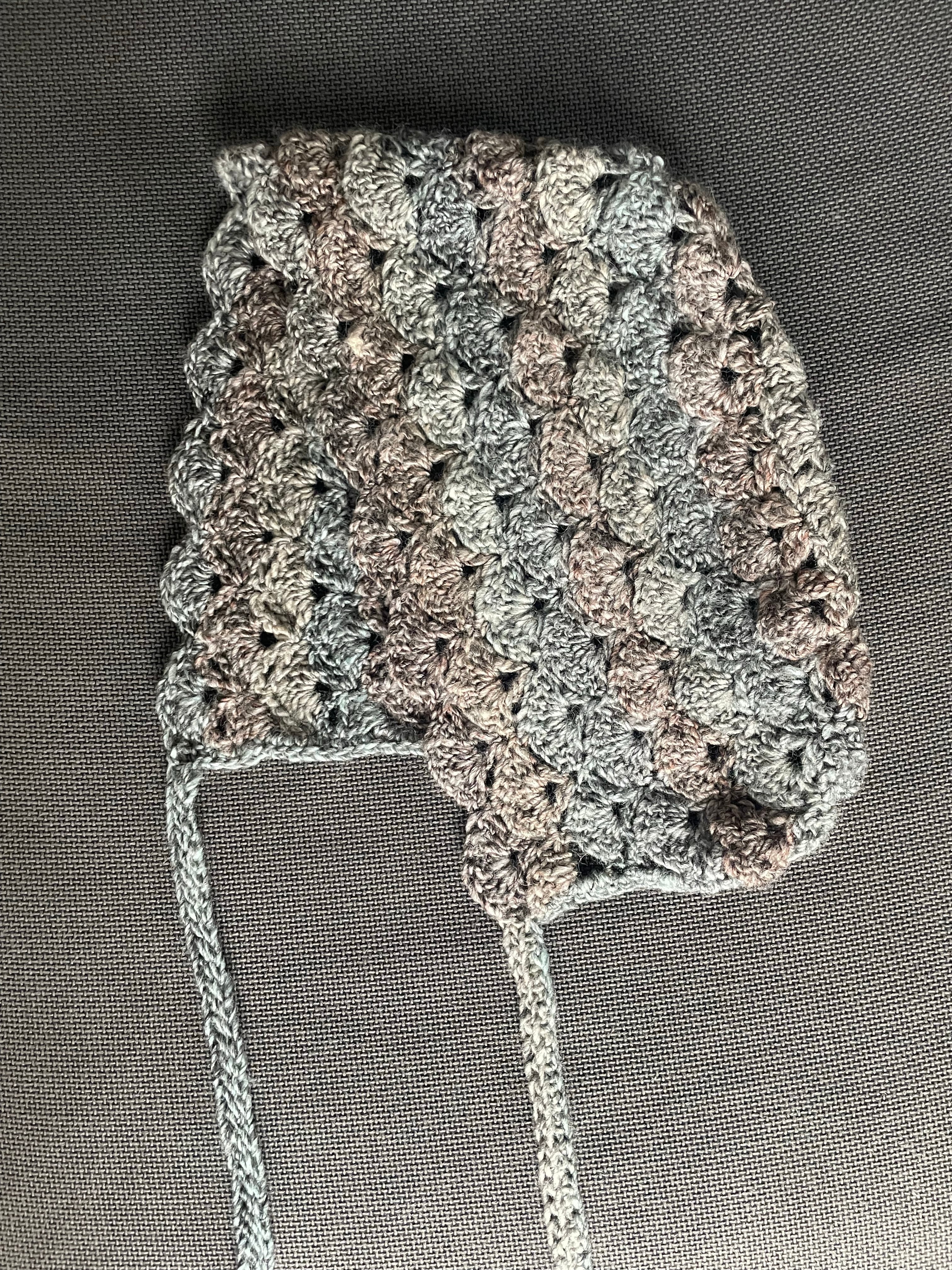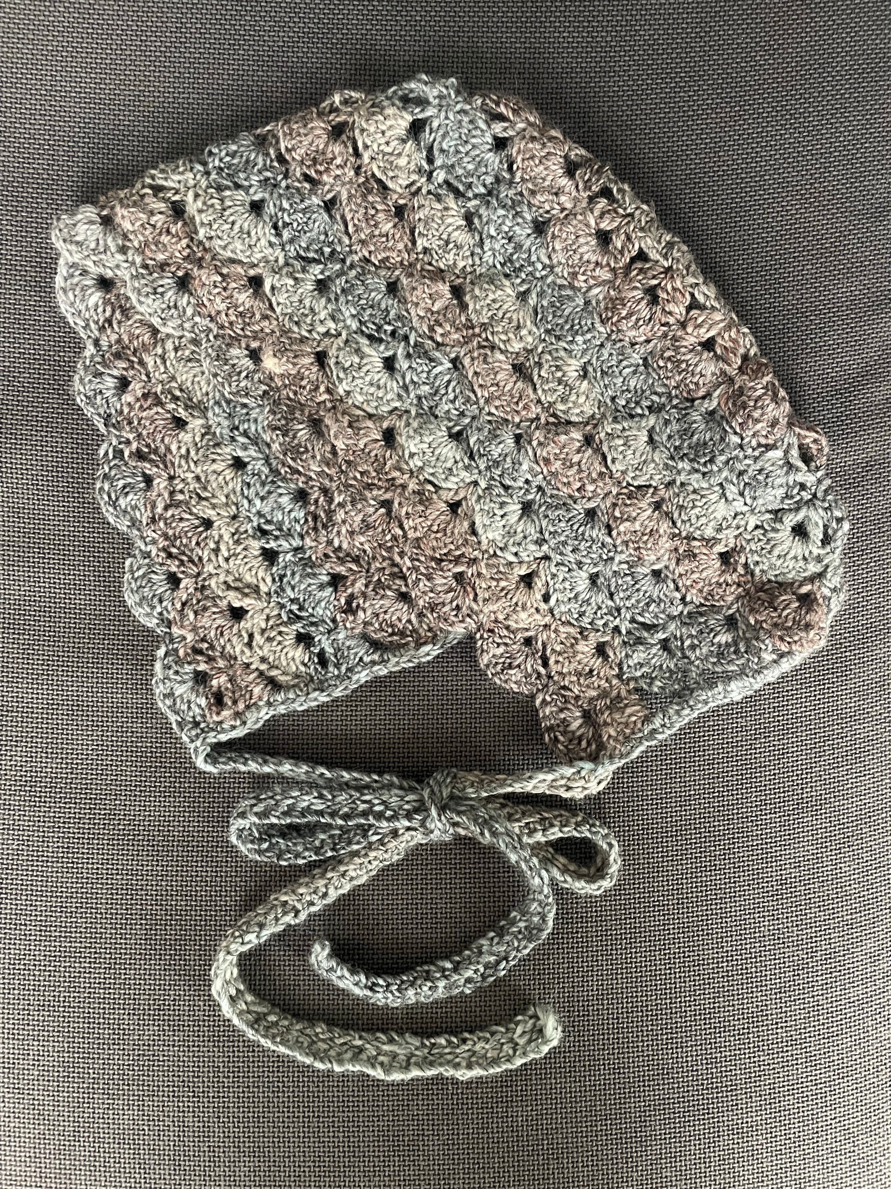 受注販売_くすみブルーのボンネット帽子_かぎ針編み